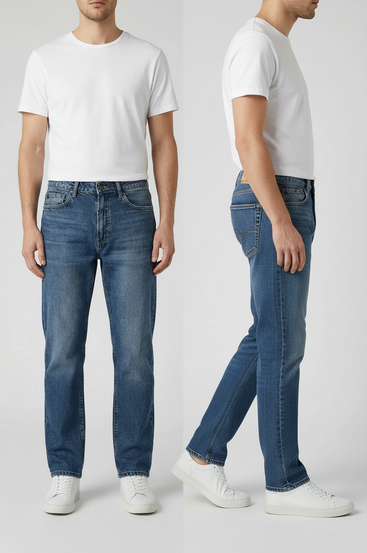 - قصة مستقيمة (Straight Fit): توفر توازناً مثالياً بين الراحة والأناقة، وتناسب مختلف أشكال الجسم.