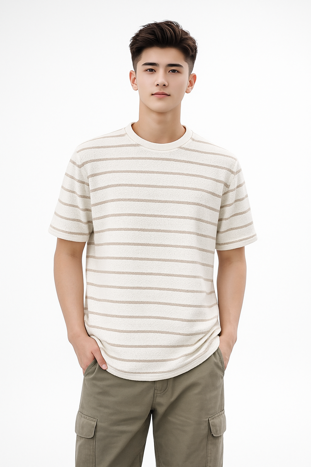 - ارتقِ بإطلالتك السمارت كاجوال مع تيشيرت ا العصري من NEW BORN. تصميم فريد يجمع بين فخامة نسيج الجاكار، اللمسة العصرية للسحاب الأمامي (نص سوستة)، والراحة المطلقة للقصة الأوفرسايز. قطعة مثالية لمن يبحث عن التميز والأناقة العملية.