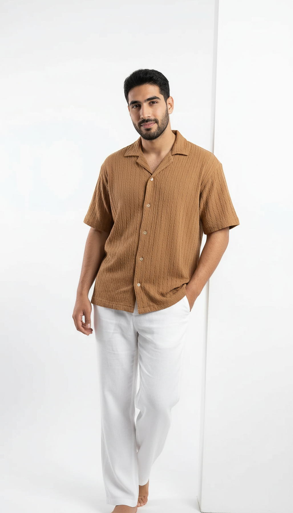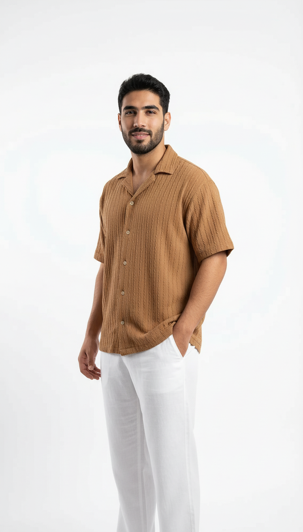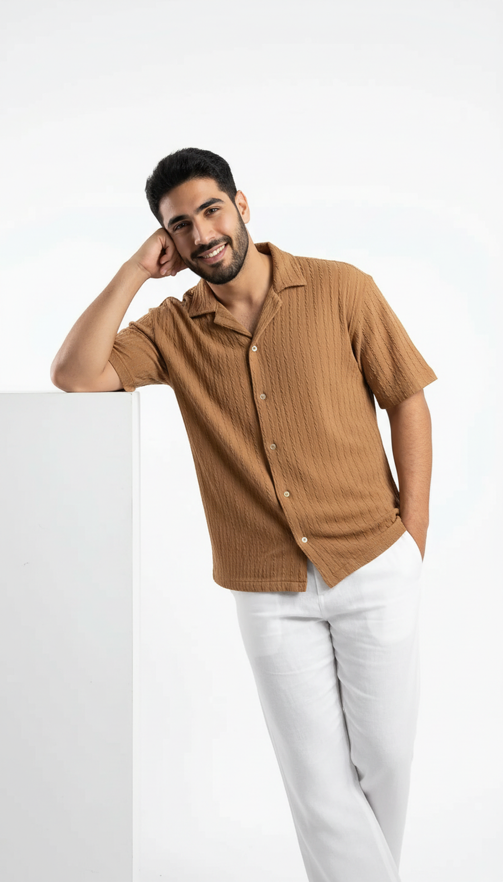 أضف لمسة من الفخامة المريحة إلى إطلالتك مع قميص NEW BORN المصمم بنسيج الجاكار المميز. يتميز هذا القميص بملمسه الفريد وتصميمه العصري الذي يجمع بين الراحة والأناقة، مما يجعله قطعة أساسية في خزانة ملابسك للمناسبات الكاجوال واليومية.