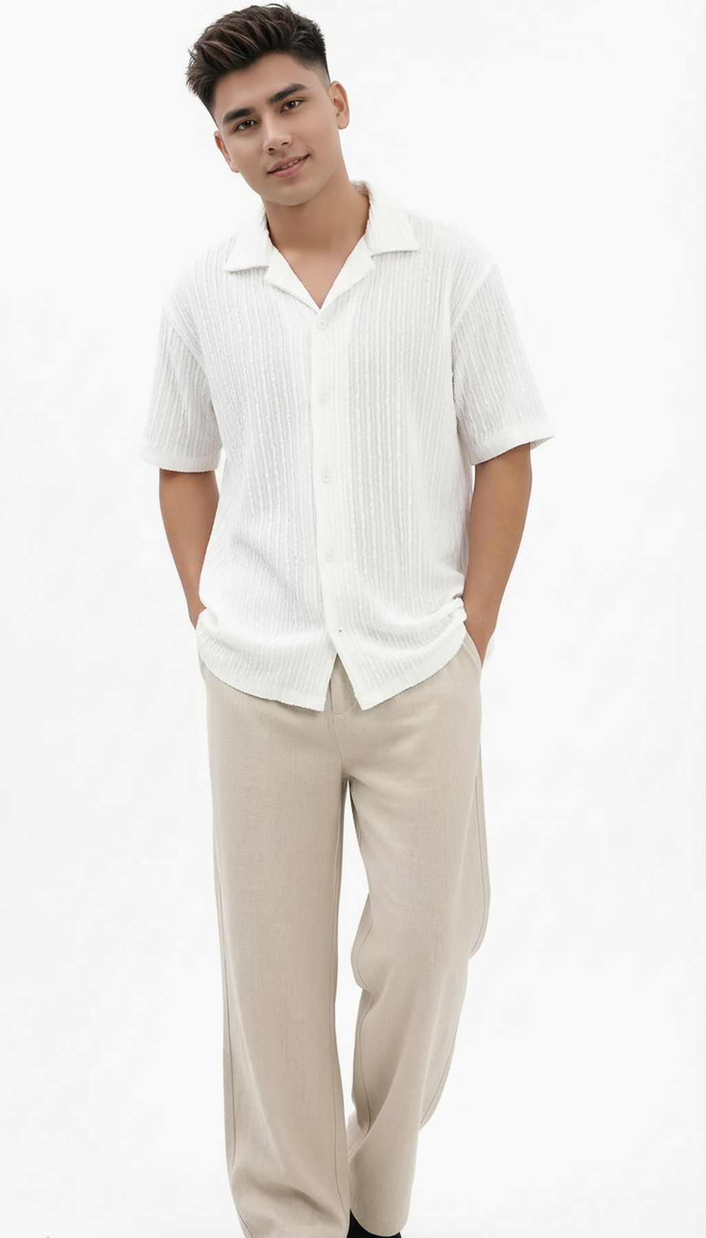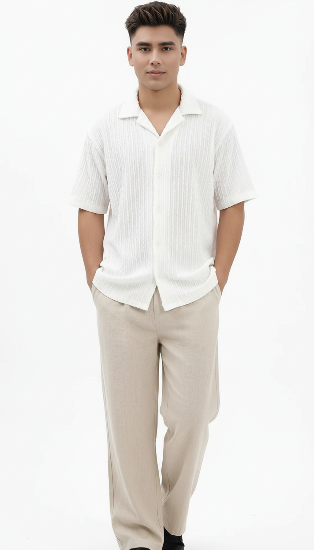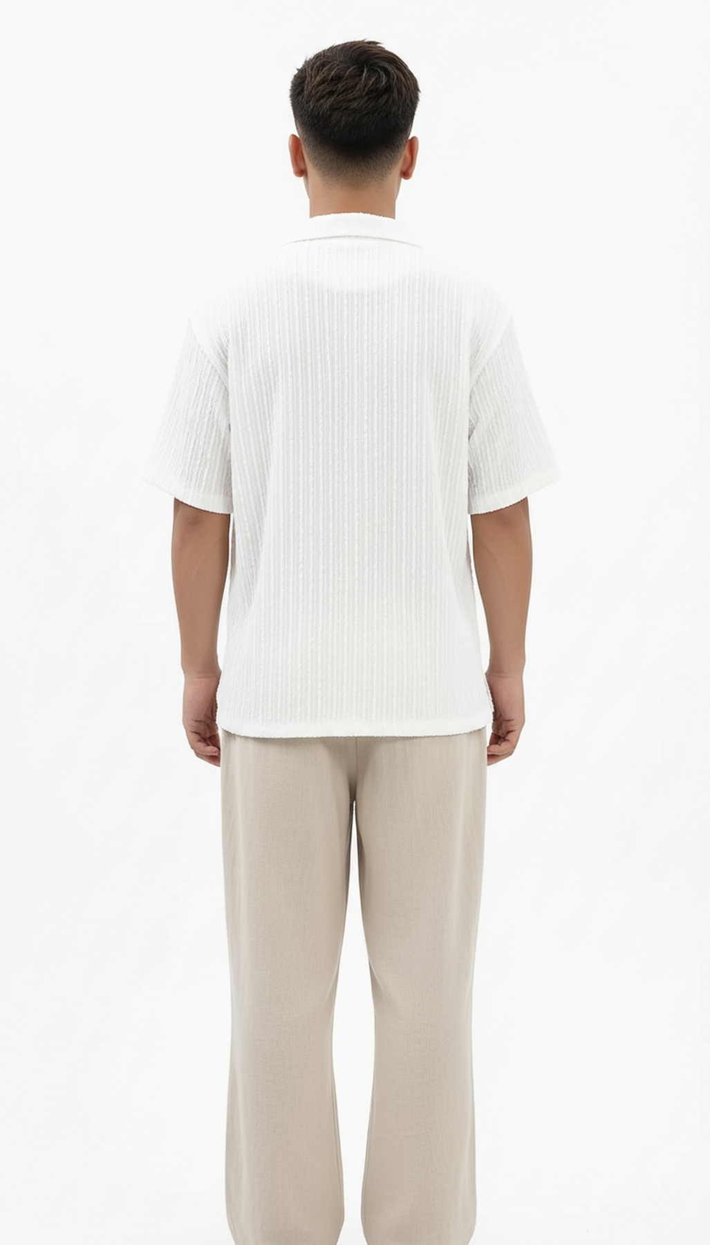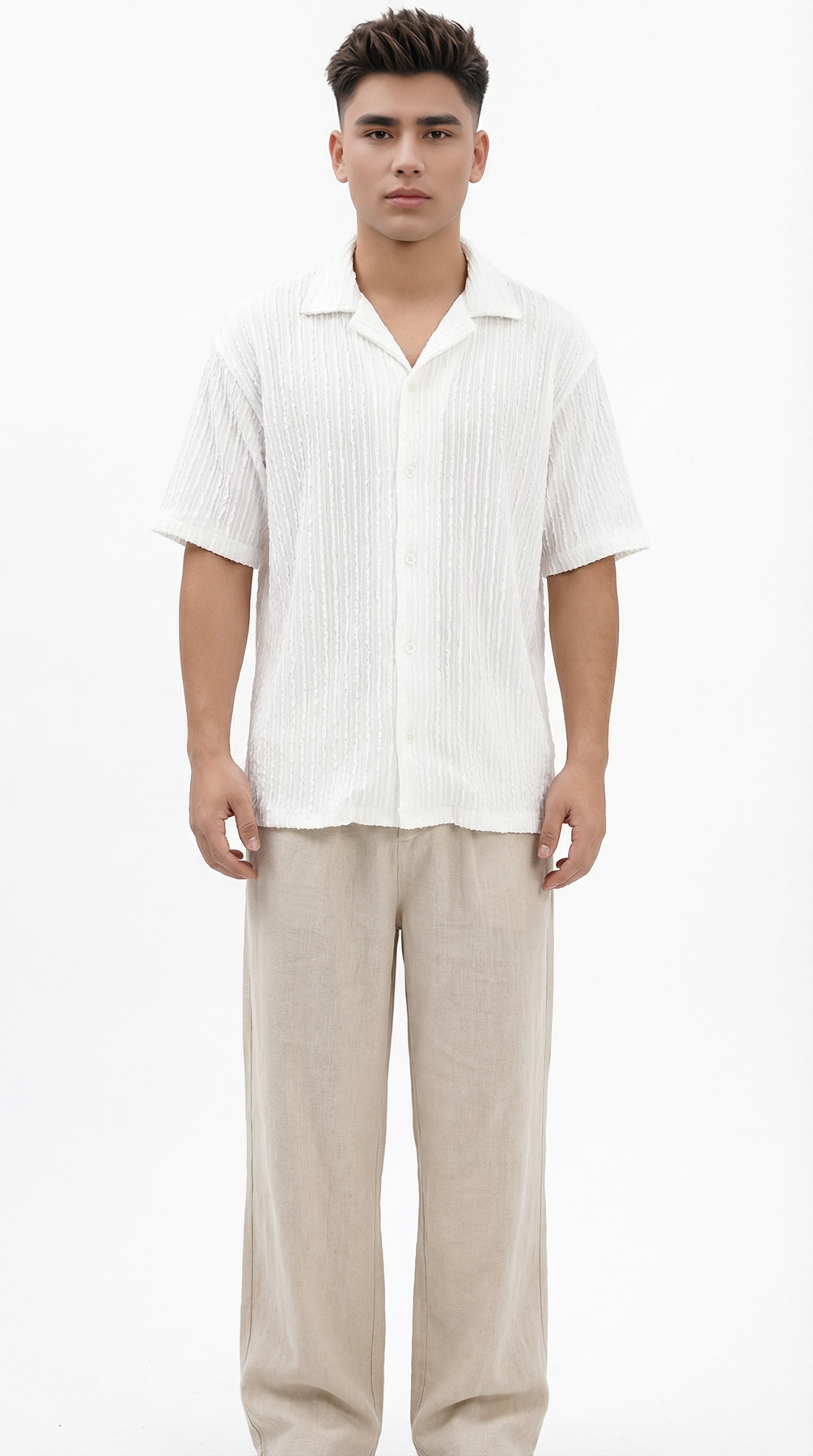 أضف لمسة من الفخامة المريحة إلى إطلالتك مع قميص NEW BORN المصمم بنسيج الجاكار المميز. يتميز هذا القميص بملمسه الفريد وتصميمه العصري الذي يجمع بين الراحة والأناقة، مما يجعله قطعة أساسية في خزانة ملابسك للمناسبات الكاجوال واليومية.