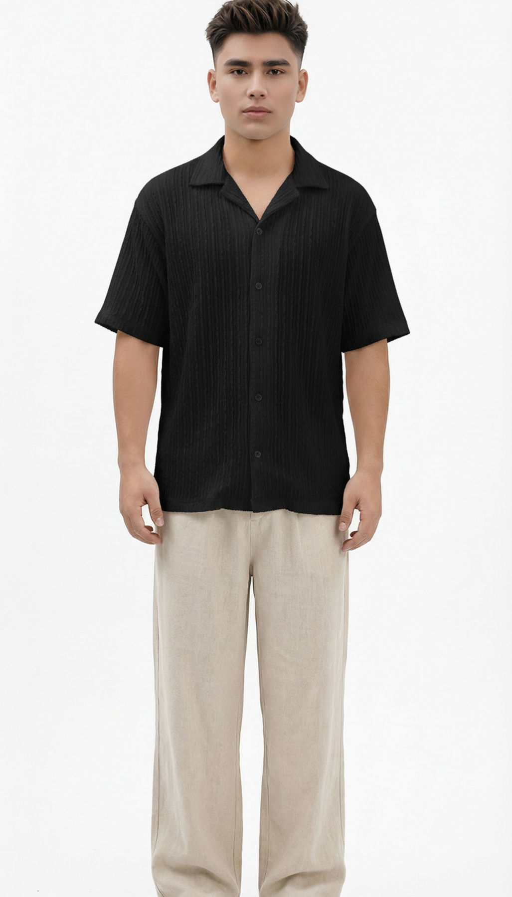 - تعددية الاستخدام: مثالي للإطلالات الكاجوال الراقية، يمكن تنسيقه مع بناطيل شينو، كتان، أو حتى شورتات لإطلالة صيفية متكاملة.