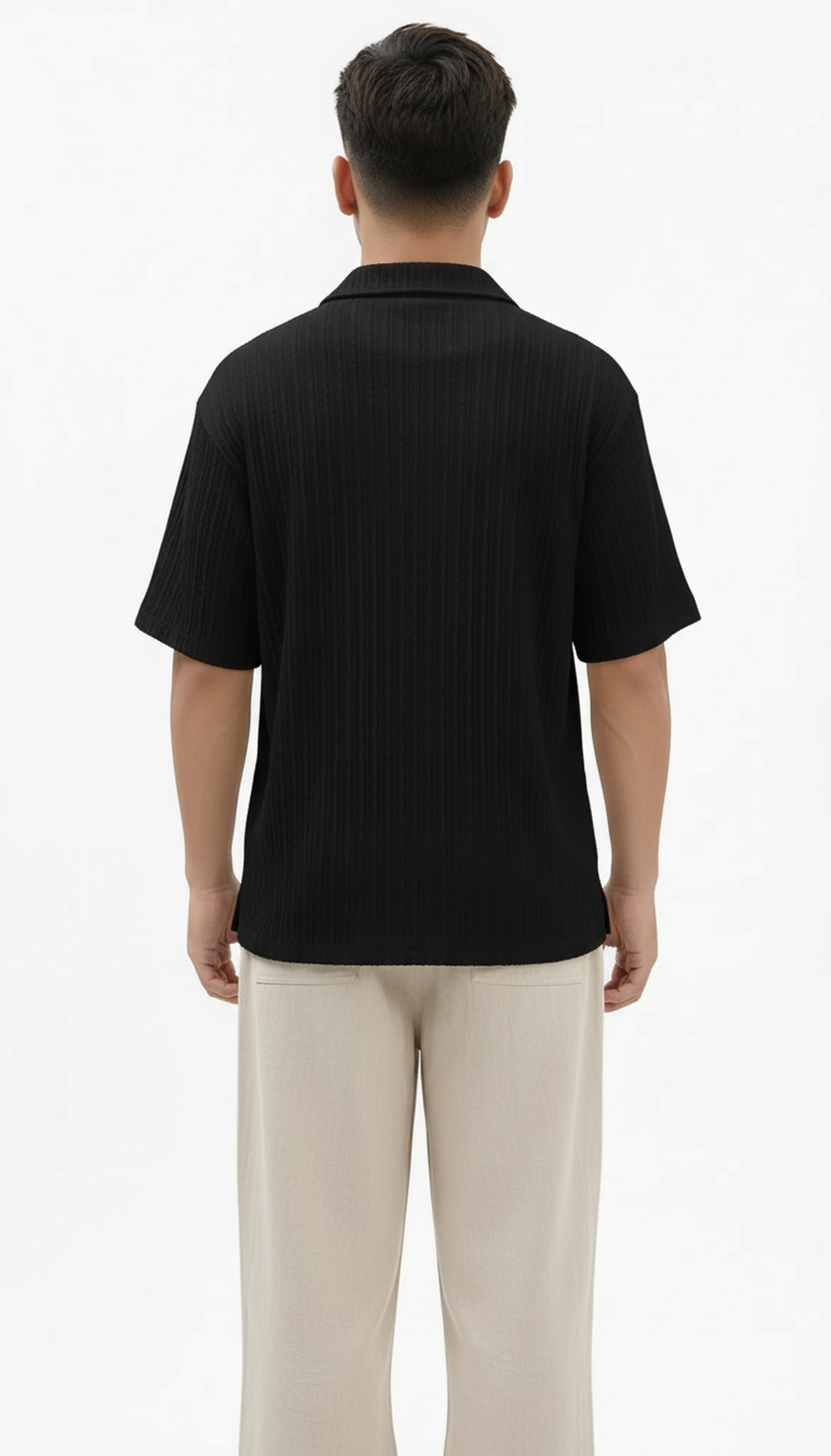 - نسيج الجاكار الفاخر: يمنح القميص ملمسًا بارزًا وتصميمًا فريدًا، مع الحفاظ على التهوية والراحة، مما يجعله مثاليًا لمختلف الفصول.